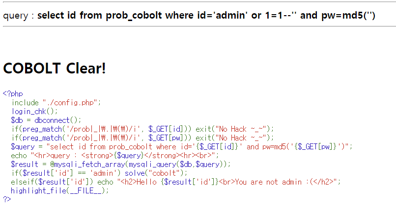 코드를 보니 admin으로 로그인을 하는 문제이다.